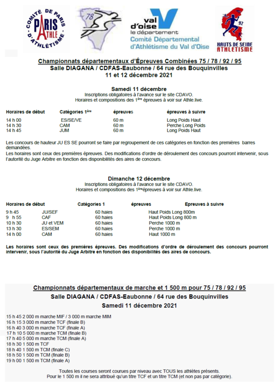 ◼ Le Comité Départemental d’Athlétisme demande une pré-inscription obligatoire des athlètes dimanche 04 décembre dernier délai. Pas d'inscriptions sur place.